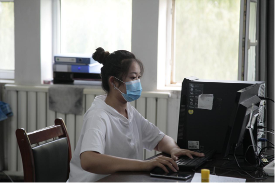 学生返校工作组孙婷老师正在汇总各学院学生每日体温信息,并对接学生体温监测数据。