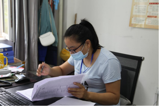 张秀芳正在查阅教职工及教职工家属的返校信息