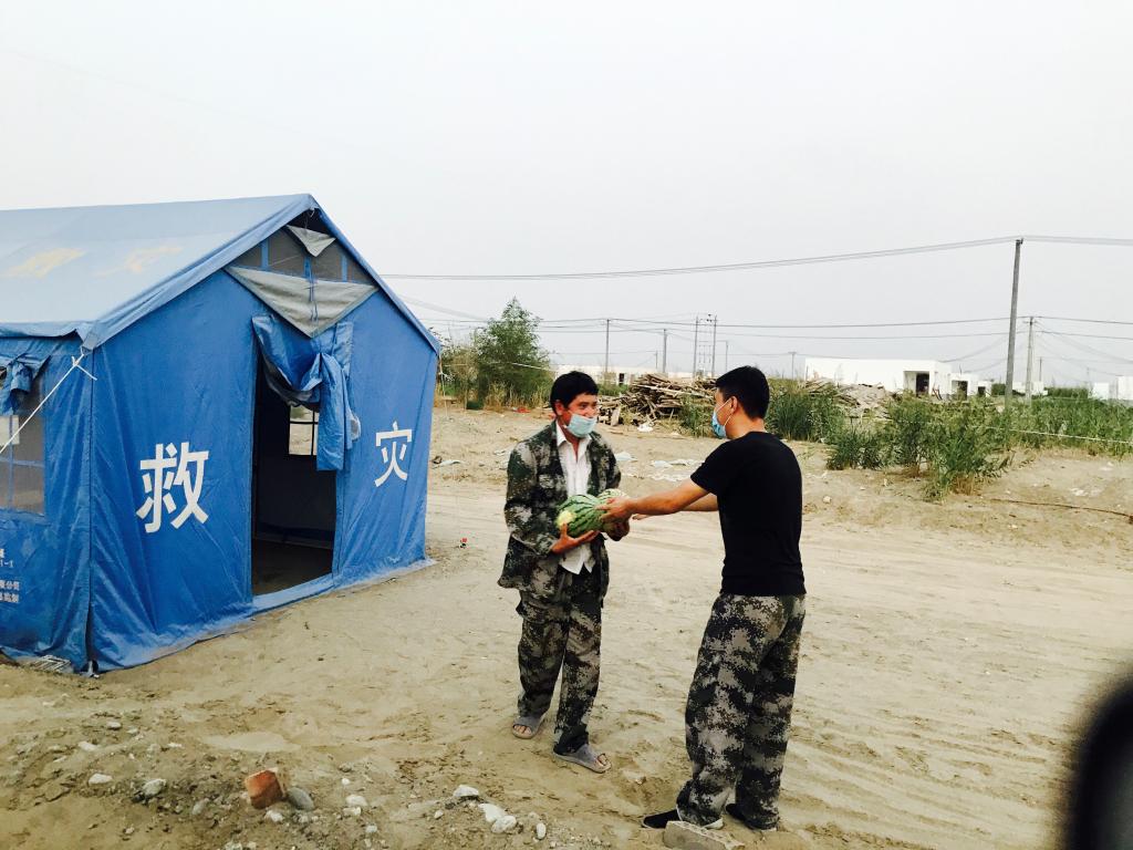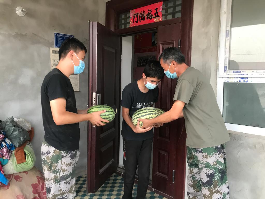 村民艾莎·沙吾尔种植的7亩多西瓜,受疫情影响眼看西瓜就烂在田里,他心里十分焦急。工作队队长郭宏伟得知此消息后,详细询问具体情况,与村委会商量,决定购置其5000余元的西瓜,发放给全村150户村民,向积极参与疫情防控工作的村民送去一缕清甜。
