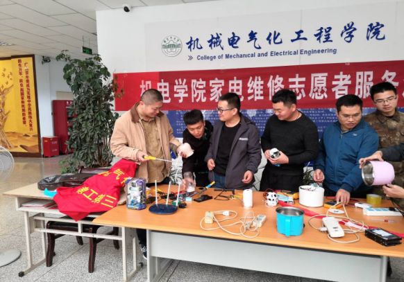 2019年11月21日,为扎实推进“不忘初心、牢记使命”教育主题,机械电气化工程学院教工第三、第四党支部和学生第三党支部在工科楼大厅为师生开展家电维修活动。