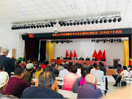 2019年10月15日,动物科学学院动物繁育学科教工党支部围绕“不忘初心、牢记使命”主题教育,开展“党旗映天山”主题党日活动。全体党员来到托喀依乡二队开展科技下乡志愿服务。