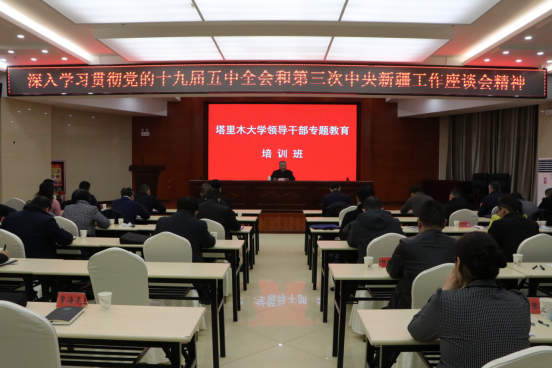 1月14日上午,党委副书记、纪委书记单洪山为学校深入学习贯彻党的十九届五中全会和第三次中央新疆工作座谈会精神专题教育培训班作讲座。讲座由党委组织部常务副部长张伟信主持,在南疆双语中心二楼报告厅举行。