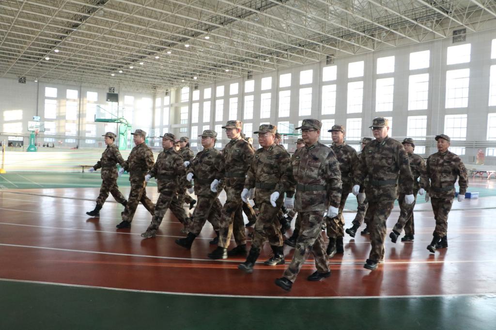 2021年1月13日,干部们比以往起得更早,统一身着迷彩服,头戴迷彩帽,佩戴领章、胸标、肩章,脚穿作训靴,扎紧编制外腰带,来到西区风雨操场,整齐列队集合,以整齐的步伐、高昂的斗志,开启冬季军事技能训练。
