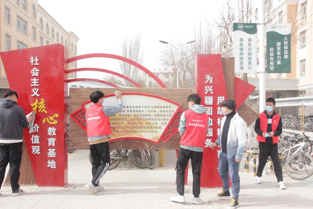 各学院志愿者为助力开学复课、美化校园卫生环境贡献了自己的力量。