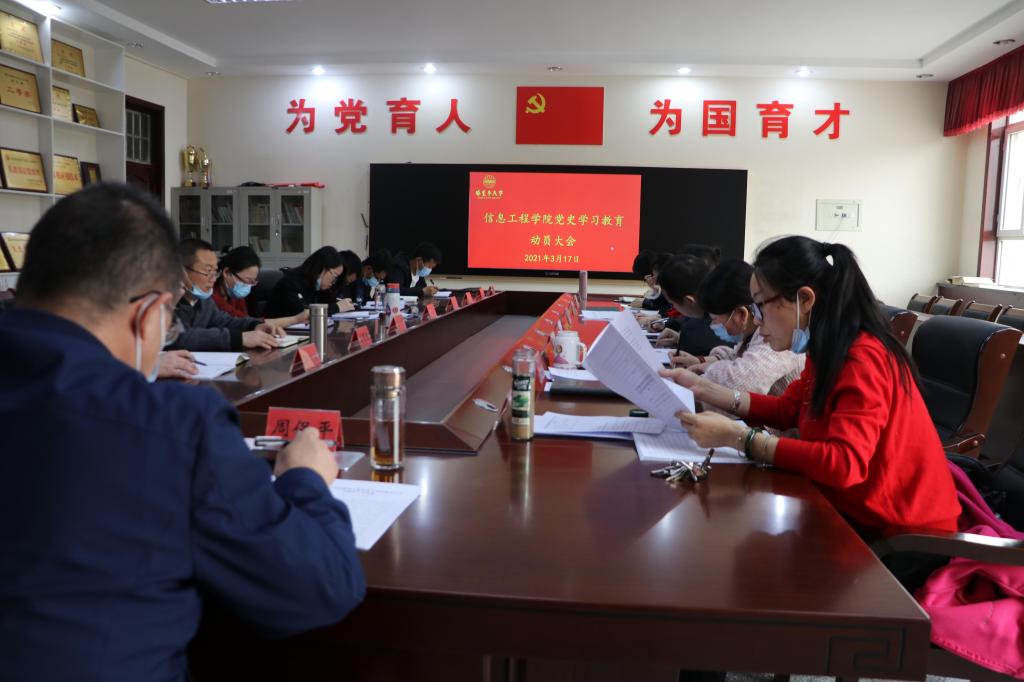 3月15日信息院党委召开党史学习教育动员会,学院党委书记周保平,党委副书记、院长张学东,党委副书记张丽娟,以及各系、各支部书记及相关负责人参加会议。会议由周保平主持,在逸夫楼205会议室召开。