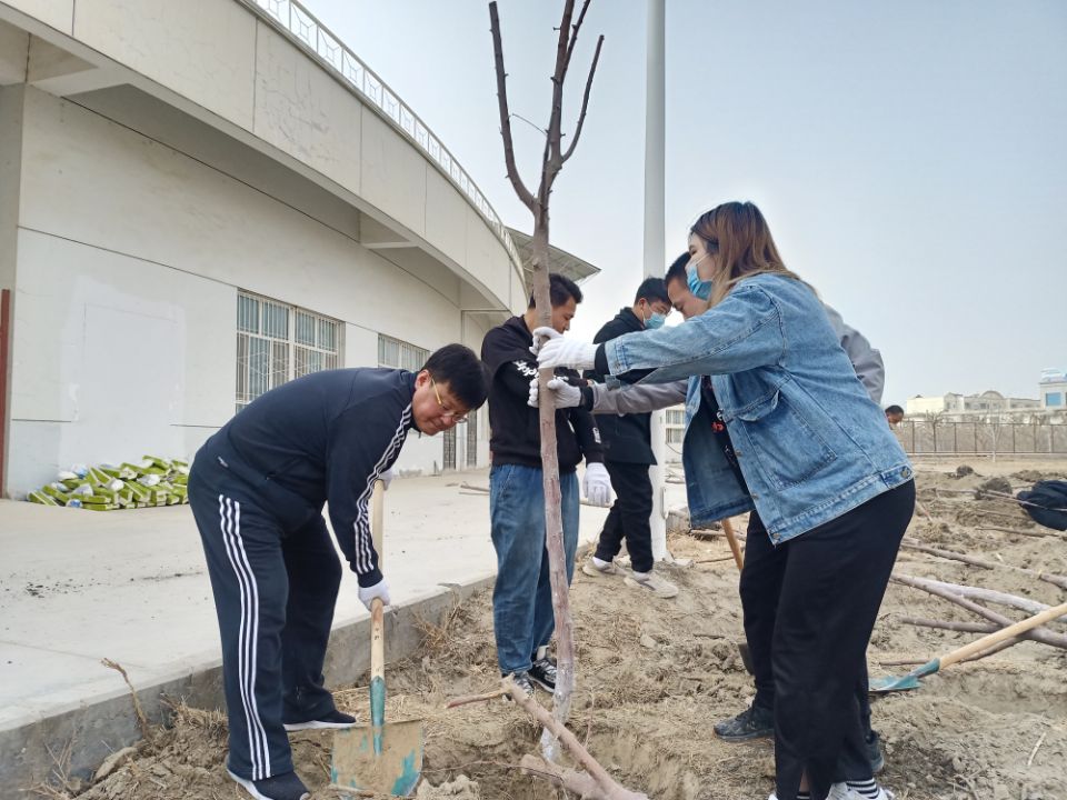 张传辉向全体参与人员介绍了植树节的由来和意义,提高了大家的绿色意识,以实际行动践行了“绿水青山就是金山银山”的发展理念。植树现场一片忙碌的景象,师生们分工协作,有的挥铲挖坑、有的扶苗栽树,大家干劲十足,经过近三个小时的辛勤劳动,种下了一颗颗绿色的希望。