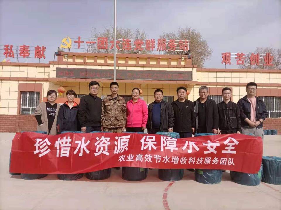 3月28日,团队成员又深入第一师十一团六连,七连为连队捐赠价值约2万元的农业节水滴灌带,把科技之光送到了基层单位,进一步增强职工群众的节水意识,增强科学灌溉,合理用水的思想观念。团队成员就“合作社+农户”田间用水管理做了采样工作。