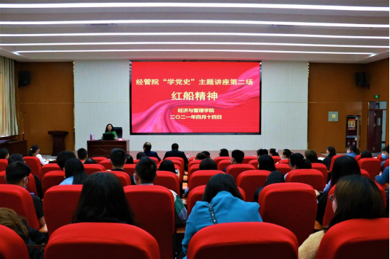 4月14日下午,经管院开展党史学习教育“学党史”主题系列讲座第二场--“红船精神”在新文科楼504报告厅进行,由吉林大学教授、银铃教师傅箐林主讲。学院领导、各党总支(书记)、全体党员参加聆听了报告,讲座由学院党委副书记谷建杰主持。