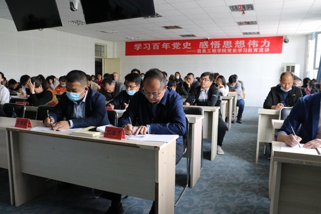 学习百年党史,感悟思想伟力。4月21日下午,学校党史学习教育宣讲团成员、经管院思政系党总支书记欧文希老师为信息院党员干部作宣讲报告。信息院全体领导干部、师生党员聆听了报告,报告会由信息院党委书记周保平主持,在逸夫楼203会议室举行。