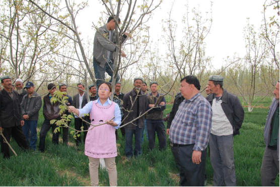 近些年,她推广核桃间作油菜模式20万亩,每亩增收500-800余元。组建修剪队,促进核桃高效栽培技术推广,获批直播建园发明专利1项,发布地方标准3项,成果转化至一师三团、十四师等地累计达11.4万亩,群众增收节支6.54亿元。