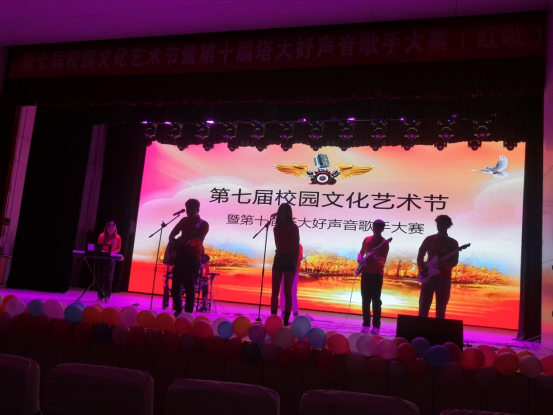 当日晚上,在学校第七届校园文化艺术节,第十届塔大好声音(红歌)舞台上胡杨乐队首唱这首原创作品献给母校,引起了在场观众的强烈反响和共鸣,得到了大家的认可和好评。