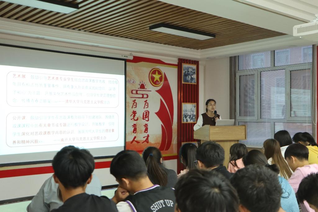 培训分别邀请了经管院郭亚萍、人文学院牛绿林老师担任主讲,本次培训共分别为两个部分,第一部分是由经管院郭亚萍教授主讲的《“思政课微电影大赛”经验及选题》,郭老师分别就大赛目的、选题方向、评分标准、往届获奖作品解读等方面为同学们做了详细介绍。聚焦本届大赛方向,立足学生实际,为大赛准备奠定了基础。
