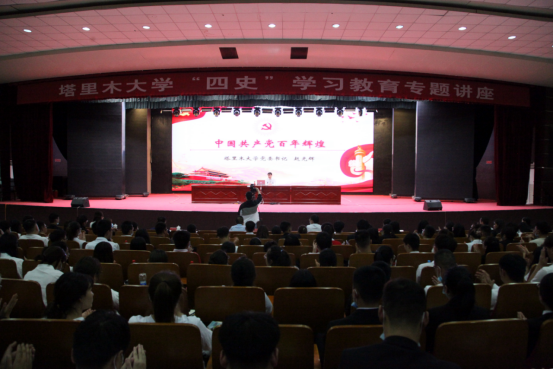 百年征程波澜壮阔,百年大党风华正茂。5月26日下午,塔里木大学“四史”学习教育专题讲座暨党史学习教育培训拉开帷幕。党委书记赵光辉作首场专题讲座,兵团党史学习教育巡回指导组组长苗启华一行,与全校学生党员1000余人一起听取讲座,在行政楼B座报告厅举行。