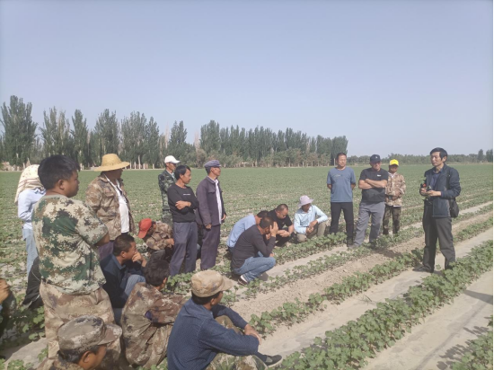 专家团根据当前棉花田管工作,现场讲解棉花种植技术及管理技术,指导职工科学管理、合理防控病虫害,30余名职工群众参加现场教学,现场气氛热烈。