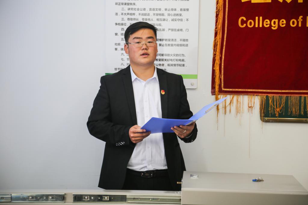经济与管理学院第一届全体青马班学员听取讲座。讲座由学院学办副主任李新龙主持,在新文科楼103室举行。