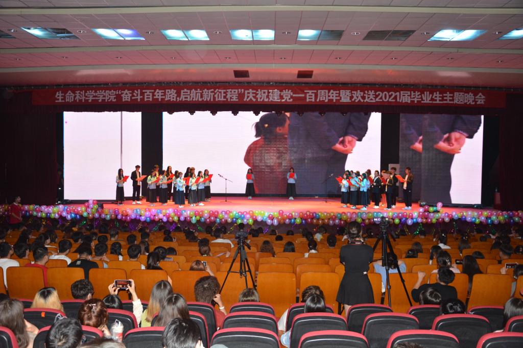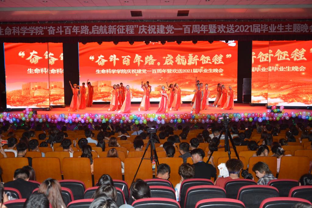 为推进党史学习教育,庆祝建党百年,同时欢送毕业生,5月30日晚,生科院在行政楼B座举办以“奋斗百年路,启航新征程”为主题的毕业生晚会。生科院全体领导,各学院师生代表和生科院2021届全体毕业生观看晚会。