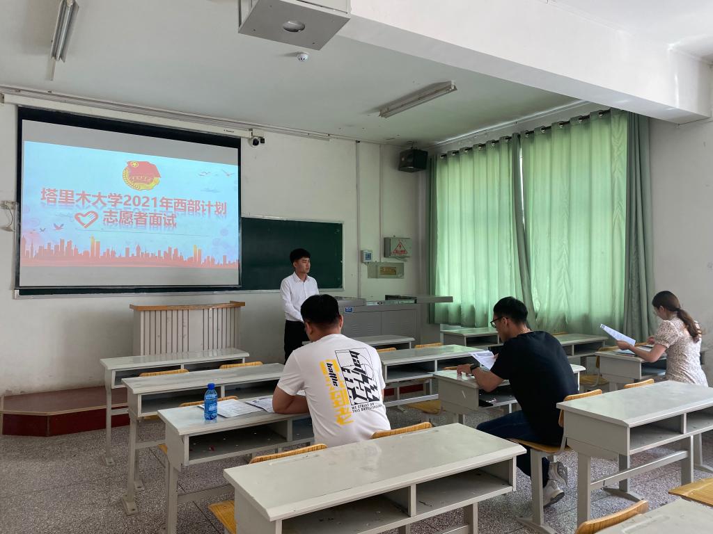 6月5日下午,塔里木大学2021年毕业生基层就业项目西部计划面试在2号楼104、107、204、207、304教室举行。