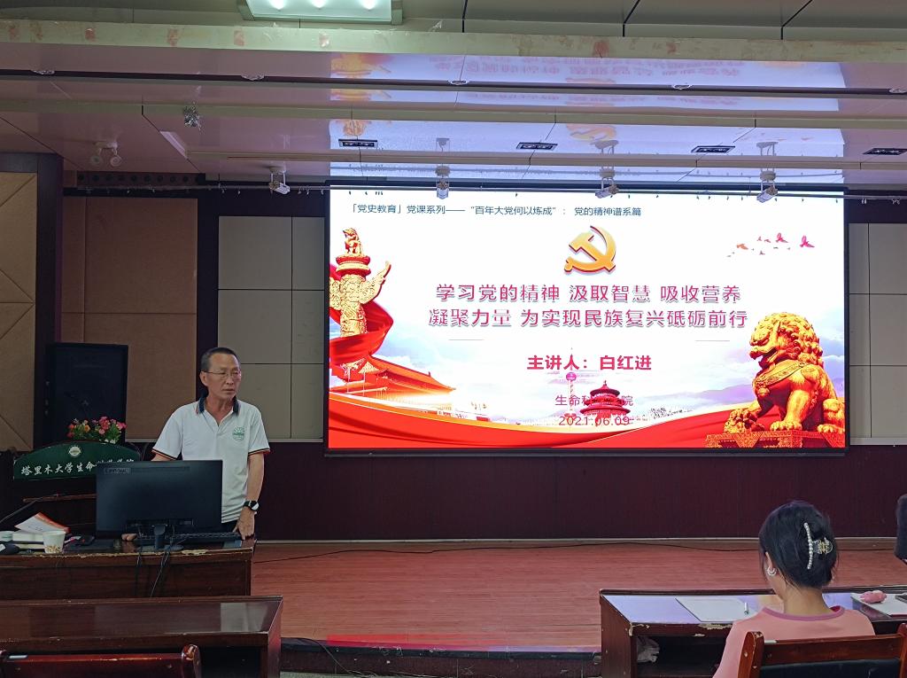 6月9日下午,生科院党委书记白红进,围绕“学习党的精神 汲取智慧 吸收营养凝聚力量为实现民族复兴砥砺前行”这一主题,面向全院师生在逸夫实验501室作了党史学习教育专题党课。