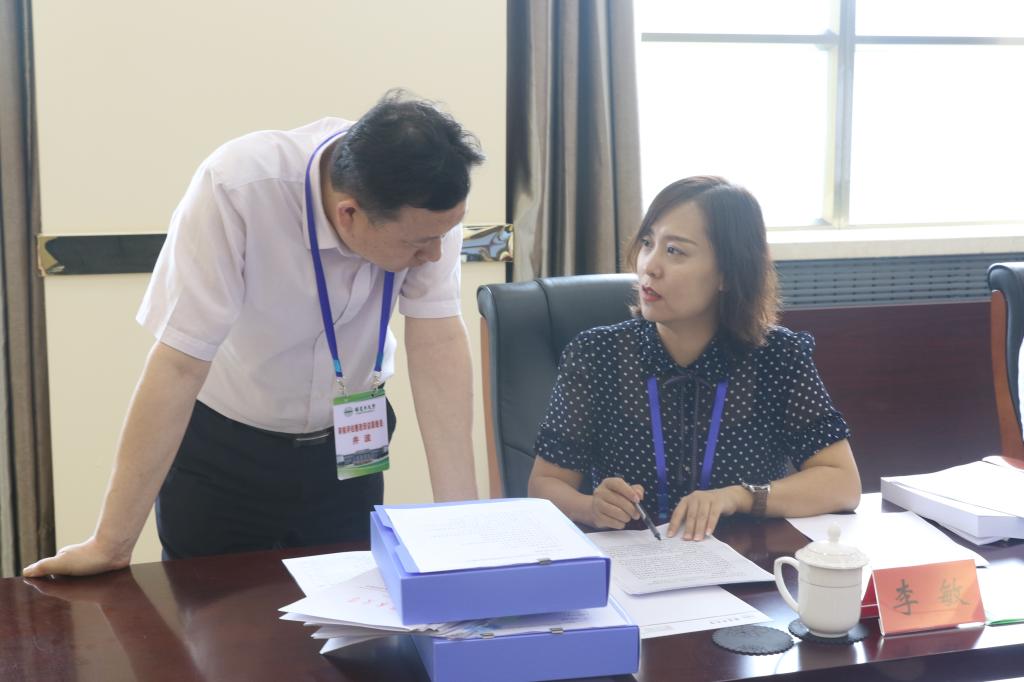 6月15日下午,本科教学工作审核评估整改回访专家组在南疆双语培训中心三楼1号会议室查阅材料。自治区本科教学审核评估整改回访专家组组长、新疆科技学院党委常委、副院长李建光,专家组成员、新疆农业大学教务处处长杨红、新疆大学教务处副处长臧航、新疆医科大学教务处医学教育研究室主任李敏,认真查阅了学校本科教学工作审核评估整改情况落实情况有关工作台账。