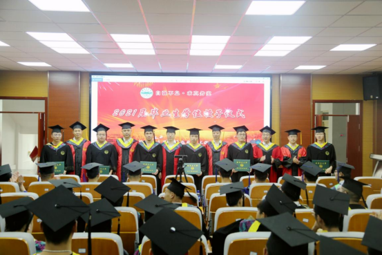 与会领导为获得硕士学位、学士学位的毕业生代表颁发了学位证书。