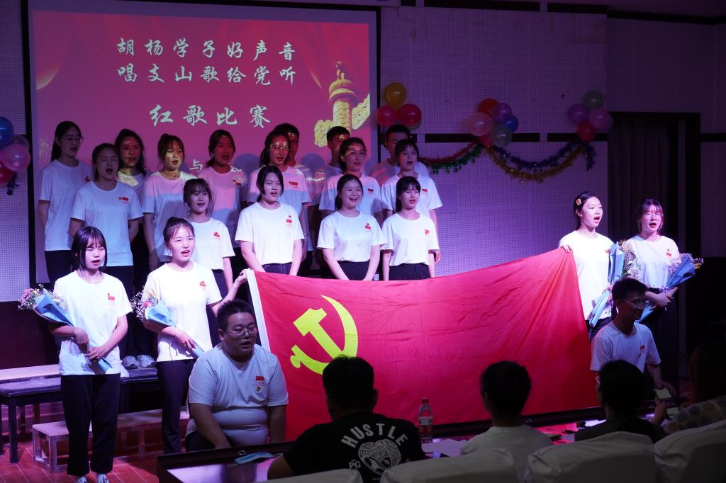 为庆祝中国共产党成立100周年,重温党的光辉历程,激发广大师生爱党爱国热情,6月12日,人文院艺术与教育系开展了“胡杨学子好声音,唱支山歌给党听”红歌大合唱比赛活动。艺术与教育系党总支书记、教师代表、辅导员以及300名学生共同参加此次大合唱比赛。