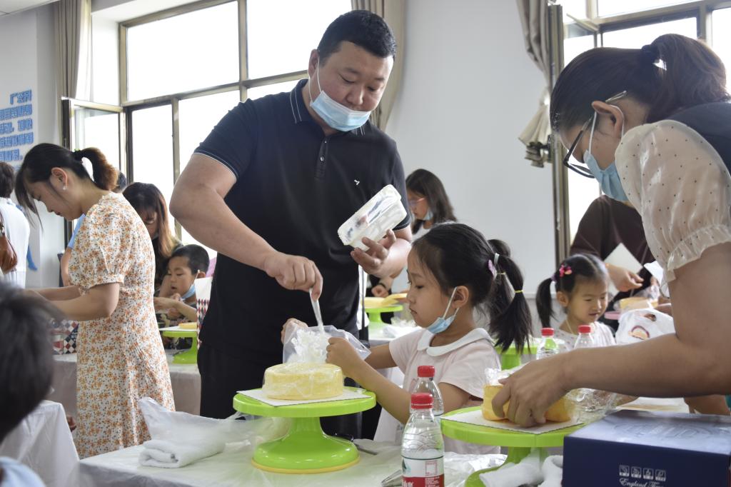 高艳红老师说“在建党100周年之际,举办这次烘焙活动非常有意义,既让我们学习了蛋糕制作知识,又让我们和孩子们用心、用情、用行动表达了对党对祖国的真挚热爱和深情祝福,也为孩子们上了一堂别样而生动的爱党爱国教育课!”