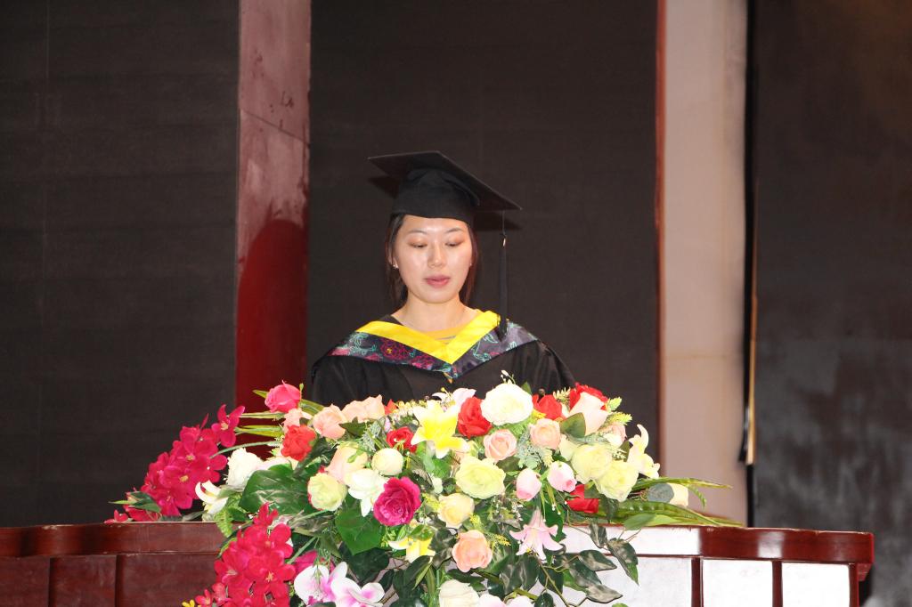 毕业生代表、食品质量与安全21-1班肖琴发言表示,无论走到哪里,我们定用最豪迈、最稳重的步伐,朝着美好的未来努力前进。我们将永远珍惜这份珍贵的师生情、同学情,从感恩出发,从谦逊做起,保持一颗平常心、进取心、责任心,认真做事、踏实做人,以青春筑梦,以奋斗圆梦,彰显塔大人的担当和风采。