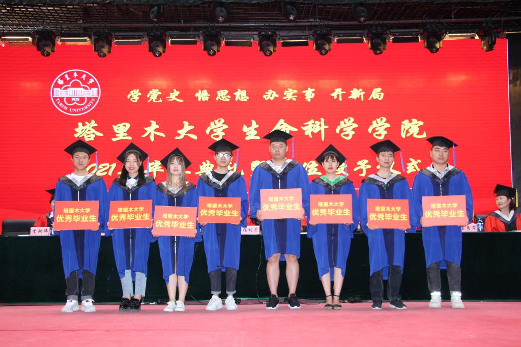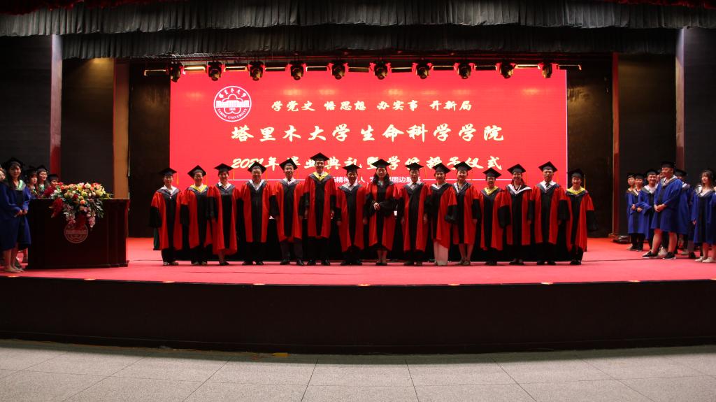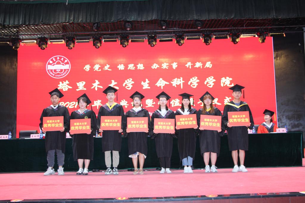 学院院长万传星宣读了《关于生科院2021年硕士、学士学位授予的决定》。学位委员为毕业生颁发了学位证书并扶正流苏。学院副院长侯旭杰宣读了获得优秀毕业生名单和考取硕士研究生学生名单。学院副院长慕自新宣读了就业“自强之星”毕业生和班集体名单、2021届毕业班校友联络员名单。与会领导为他们颁发了证书。