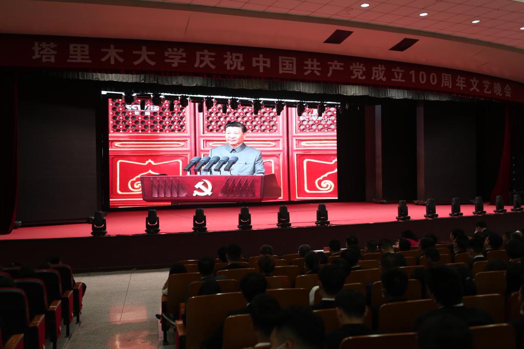 庆祝中国共产党成立100周年大会7月1日上午8时在北京天安门广场隆重举行。中共中央总书记、国家主席、中央军委主席习近平发表重要讲话。塔里木大学在行政楼B座报告厅设主会场,组织全体副处级以上党员领导干部、师生党员代表集中收听收看。经管院、机电院分别在新文科楼、工科楼设分会场组织师生党员集中收听收看。各基层党委(党总支、直属党支部)自行组织本单位师生党员通过手机、电视、网络、电台、广播等媒体自行收听收看。总书记重要讲话精神在塔里木大学广大党员干部和师生员工中引发热烈反响。