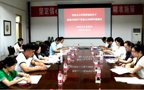 7月1日下午,塔里木大学召开党外知识分子庆祝中国共产党成立100周年座谈会。党委副书记张爱萍主持会议并讲话。党外知识分子和民主党派成员代表参加座谈会。会议在行政楼317会议室召开。