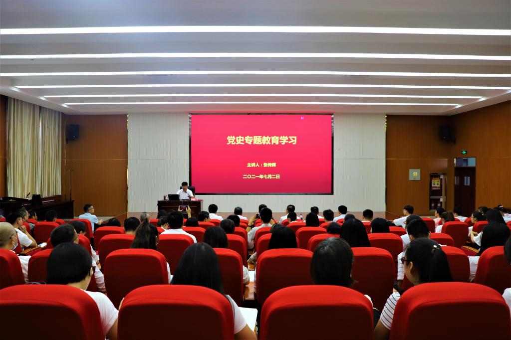 7月2日下午,学校党委副书记、校长张传辉为师生党员讲授题为“为实现中华民族伟大复兴而奋斗--学习总书记在庆祝中国共产党成立100周年大会上的重要讲话”的党史学习教育专题党课。党课由经管院党委书记田国林主持,经管院、水建院、史哲、医学院、保卫部等师生党员共同参加,在文科实验楼报告厅504室进行。
