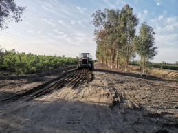 该项目是塔里木大学驻十一团七连“访惠聚”工作队积极响应党史学习教育“为民办实事”的具体行动,把党史学习教育同推动实际工作相结合,通过走访群众、实地查看,联合连队“两委”商议后确定的惠民项目。在走访调研过程中,工作队了解到连通七连西区泵房东西方向机耕道路及东区泵房南北方向机耕道路路面为土路,路面坑洼、尘土较厚,正常天气行走不便,遇雨水天气更是泥泞难行,人摔车陷时有发生,为群众通行带来诸多不便。而且两条路段都是通往泵房路段,是职工群众浇水灌溉、施肥必经之路。了解情况后,工作队与连队“两委”精心谋划、多次现场商议,决定链接多方资源确定项目方案,解决职工群的通行难题。
