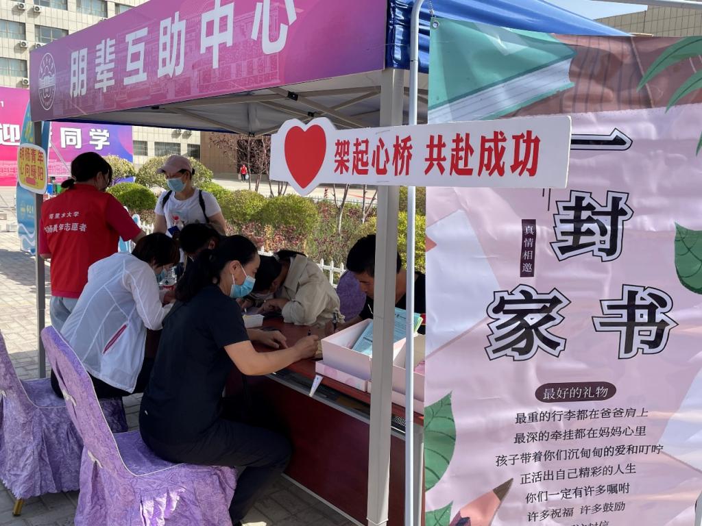 胡杨青年朋辈互助中心在塔里木大学胡杨干部培训中心迎新点举办了“一封家书”活动。父母为孩子写下祝福和鼓励的话语,孩子带着父母的爱和叮咛走向更广阔的天地。