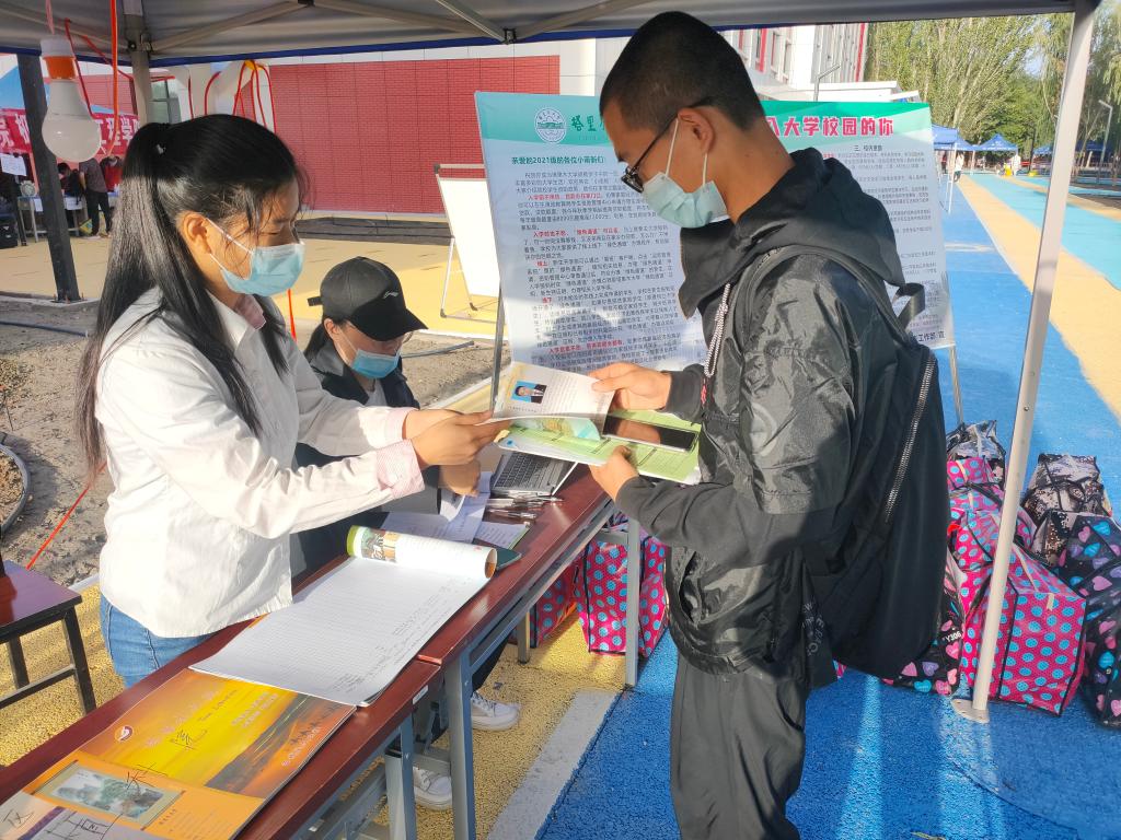 在“绿色通道”报道点,工作人员现场为申请国家生源地助学贷款、受暴雨洪灾和新冠肺炎疫情影响、低保家庭、特困救助、残疾等家庭经济困难新生办理“绿色通道”相关手续,并耐心细致的进行资助政策宣传,励志教育、“校园贷”警示教育、发放“爱心大礼包”等一站式服务。