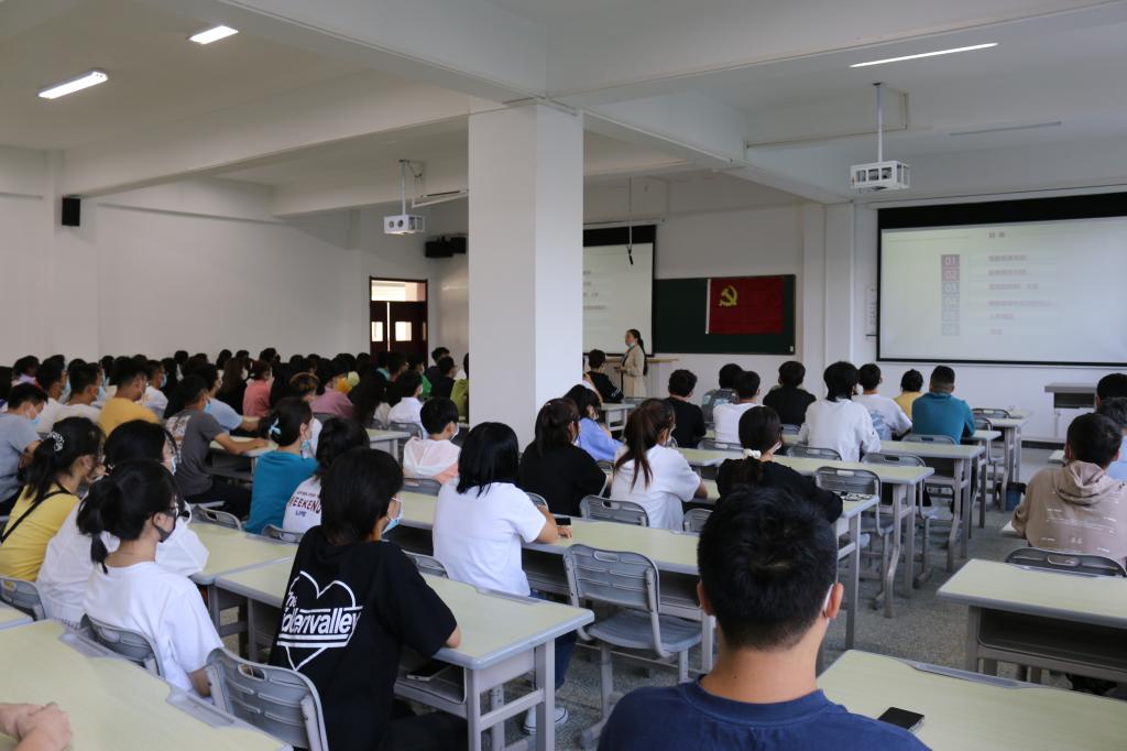 为深入学习贯彻总书记在庆祝中国共产党成立100周年大会上的重要讲话精神,教育引导广大青年学子听党话、感党恩、跟党走,做知史爱党、知史爱国的新时代中国青年,9月18日上午,经济与管理学院开展党史学习教育暨2021级新生入党启蒙教育活动,全院787名新生参加。此次活动由各学生党支部书记主持,分别在文科实验楼、综合楼等场地开展。