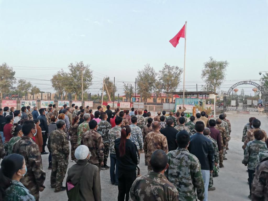9月30日,工作队与连队“两委”为每家每户亲自送去五星红旗,并帮助行动不便、高龄职工悬挂。