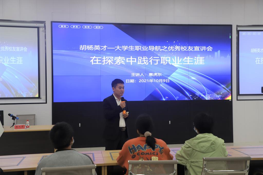 春花秋月,金风送爽。10月9日下午,经管院在文科实验楼503室开展胡杨英才——大学生职业导航之优秀校友宣讲会,我校优秀校友、农经206-3班毕业生、中国五矿二十三冶建设集团人力资源部副总经理惠虎东,为大学生们职业引航指路。惠虎东先生心系母校,大力支持塔大毕业生就业工作,为提高学院毕业生就业率及推进应用型人才定向培养起到了积极作用。此次宣讲会共80余名在校生听取讲座。