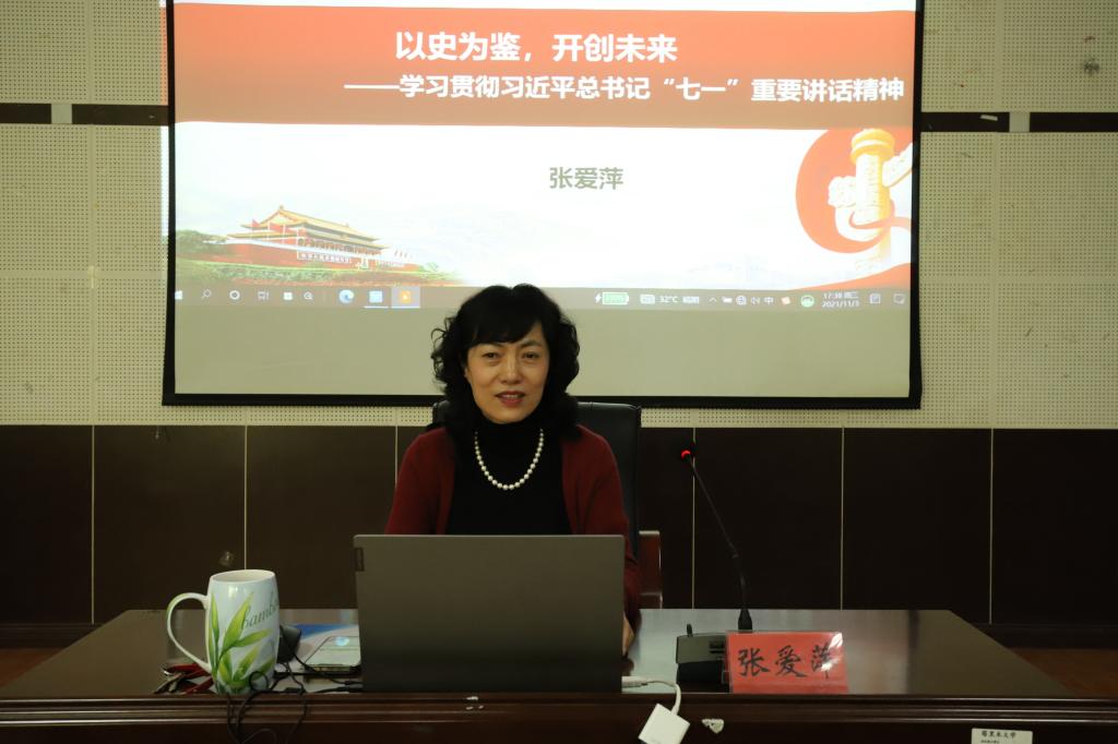 11月3日下午,党委副书记张爱萍为机关党员干部作学习贯彻习近平总书记“七一”重要讲话精神宣讲报告。组织部、宣传部、统战部、研究生工作部、学生工作部、工会、团委、幼儿园领导及工作人员聆听宣讲报告。报告会由党委组织部常务副部长、机关党委书记张伟信主持,在行政楼B座117室举行。