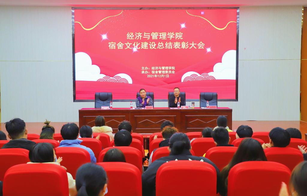 为进一步推进党史学习教育“我为群众办实事”实践活动走深走实,贯彻落实党的十九届六中全会精神和自治区第十次党代会精神,营造创建全国文明城市、文明校园的浓厚氛围,12月1日下午,经管院在新文科楼504会议室举办宿舍文化建设总结表彰大会。学院党委副书记、院长蒋志辉,党委副书记谷建杰,全体辅导员、第四届宿舍管理委员会成员、获奖代表参加。