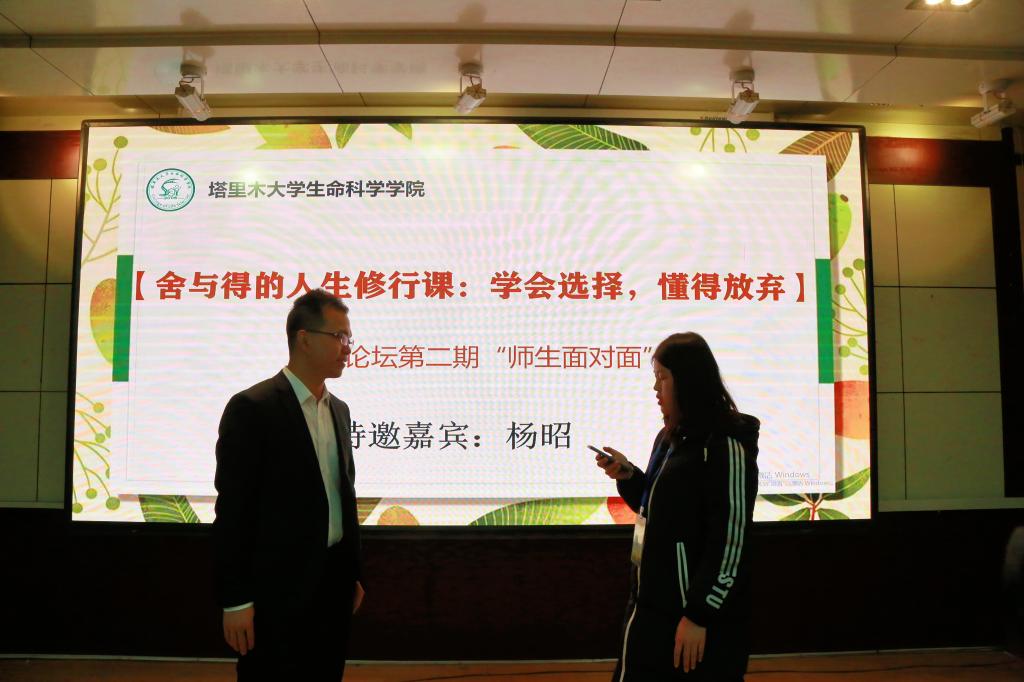 在这些成绩的背后,杨昭克服了许多常人无法想象的困难。家在北京的他,暂时告别了家中的妻儿、告别了生活和工作条件相对优越的环境,孤身一人来到离北京最远、离沙漠最近的塔里木大学,为了边疆的事业发展他舍小家顾大家,一心一意扑在工作上。在一年半的援疆日子里,他很少回家,与家人见面的次数屈指可数,但他从没有抱怨过什么,反而是将自己的全部身心,投入到了塔大的工作中。